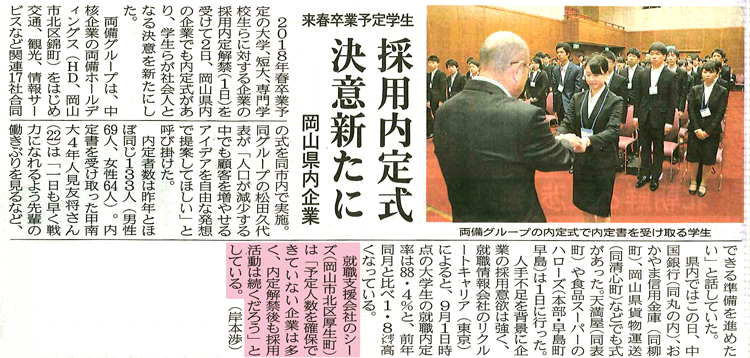 2018年卒の内定式について、弊社のコメントが掲載されました。