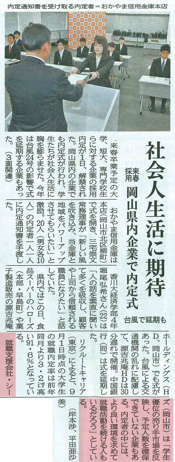 『来春採用の内定式』の記事に、弊社のコメントが掲載されました。
