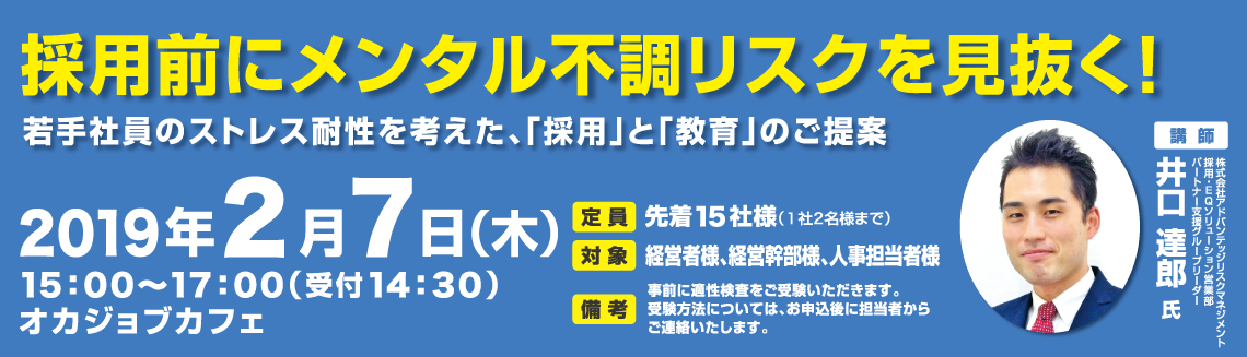 | セミナー開催日 | 2019年2月7日(木)15:00~17:00 [受付開始14:30〜] |